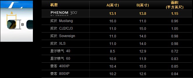 飛鴻300公務(wù)機(jī)窗戶尺寸對(duì)比 |
