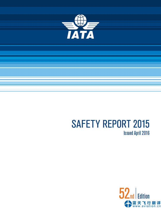 北京藍(lán)天飛行翻譯公司承接IATA安全報(bào)告2015翻譯任務(wù) Translation of IATA SAFETY REPORT 2015 ![]() IATA安全報(bào)告2015 IATA SAFETY REPORT 2015 The IATA Safety Report is the flagship safety document produced by IATA since 1964. It provides the industry with critical information derived from the analysis of aviation accidents to understand safety risks in the industry and propose mitigation strategies. IATA安全報(bào)告2015(IATA SAFETY REPORT 2015)的主要內(nèi)容包含有: SAFETY REPORT 2015 Senior Vice-President Foreword Chairman Foreword Safety Report 2015 Executive Summary Fatality Risk IATA Safety Strategy Section 1: IATA Annual Safety Report Section 2: Decade in Review All Accidents Fatality Risk Fatal Accidents Hull Losses Fatalities Accident Costs Section 3: 2015 in Review Aircraft Accidents All Accidents Fatality Risk Fatal Accidents Hull Losses Section 4: In-Depth Accident Analysis 2015 Aircraft Accidents 2011-2015 Aircraft Accidents Fatal Aircraft Accidents Non-Fatal Aircraft Accidents IOSA Aircraft Accidents Non-IOSA Aircraft Accidents Controlled Flight into Terrain Loss of Control In-flight Mid-air Collision Runway/Taxiway Excursion In-flight Damage Ground Damage Undershoot Hard Landing Gear-up Landing/Gear Collapse Tailstrike Off-Airport Landing/Ditching Jet Aircraft Accidents Turboprop Aircraft Accidents Section 5: In-Depth Regional Accident Analysis Africa Aircraft Accidents Asia/Pacific Aircraft Accidents CIS Aircraft Accidents Europe Aircraft Accidents LATAM Aircraft Accidents MENA Aircraft Accidents North America Aircraft Accidents North Asia Aircraft Accidents Section 6: Analysis of Cargo Aircraft Accidents Cargo Aircraft Accidents Section 7: Cabin Safety Cabin End States Section 8: Report Findings and IATA Prevention Strategies Section 9: TAWS Analysis Section 10: GSIE Harmonized Accident Rate Addendum A: Top Contributing Factors - Section 4 2015 Aircraft Accidents TCF 2011-2015 Aircraft Accidents TCF Fatal Aircraft Accidents TCF Non-Fatal Aircraft Accidents TCF IOSA Aircraft Accidents TCF Non-IOSA Aircraft Accidents TCF Controlled Flight into Terrain TCF Loss of Control In-flight TCF Mid-air Collision TCF Runway/Taxiway Excursion TCF In-flight Damage TCF Ground Damage TCF |