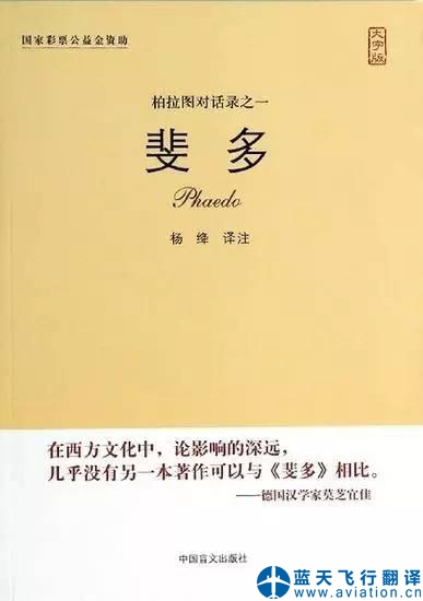 “我按照自己翻譯的習(xí)慣,一句句死盯著原文譯,力求通達(dá)流暢,盡量避免哲學(xué)術(shù)語,努力把這篇盛稱語言生動(dòng)如戲劇的對(duì)話譯成戲劇似的對(duì)話。柏拉圖的這篇絕妙好辭,我譯前已讀過多遍,蘇格拉底就義前的從容不懼,同門徒侃侃討論生死問題的情景,深深打動(dòng)了我,他那靈魂不滅的信念,對(duì)真、善、美、公正等道德觀念的追求,給我以孤單單生活下去的勇氣。” 2000年,中譯本《斐多》出版,被稱為“迄今為止最感人至深的哲學(xué)譯本”。 楊絳先生談翻譯