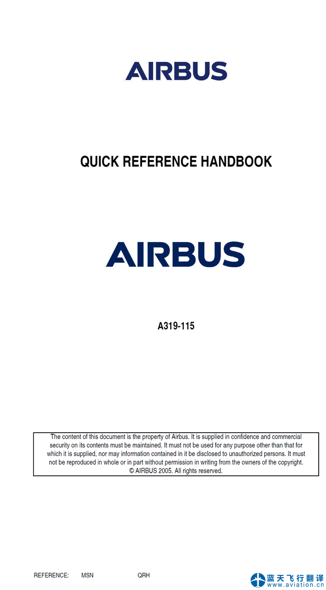 北京藍天飛行翻譯公司承接大型公務(wù)機公司的2020年7月15日版本ACJ319快速檢查單(QRH QUICK REFERENCE HANDBOOK)翻譯任務(wù) 15 JUL 20 ACJ319 QUICK REFERENCE HANDBOOK Translation